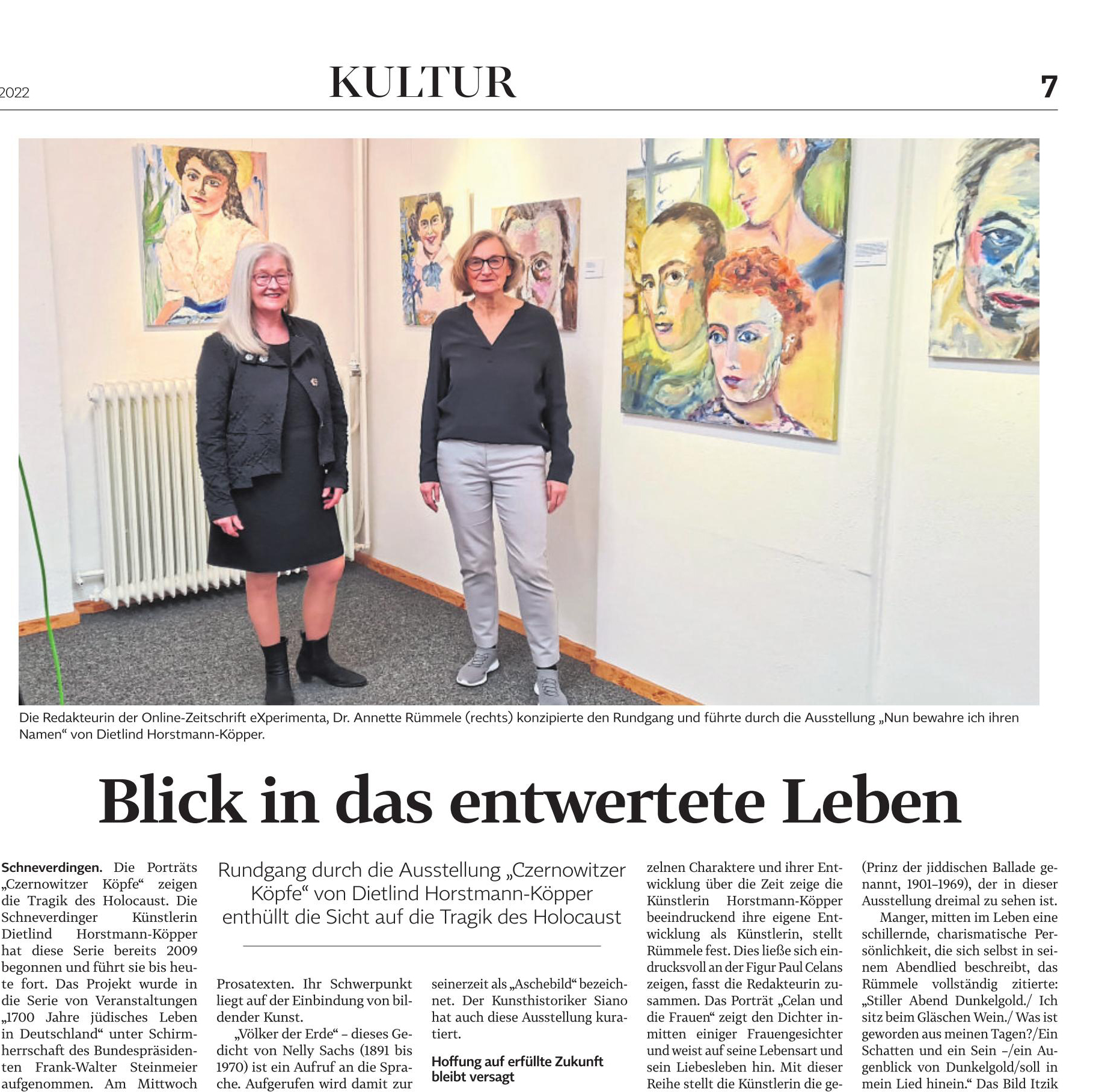 Nun bewahre ich ihre Namen. Ausstellung von Portraits jüdischer Dichterinnen und Dichter im KunstRaum der Kulturstellmacherei