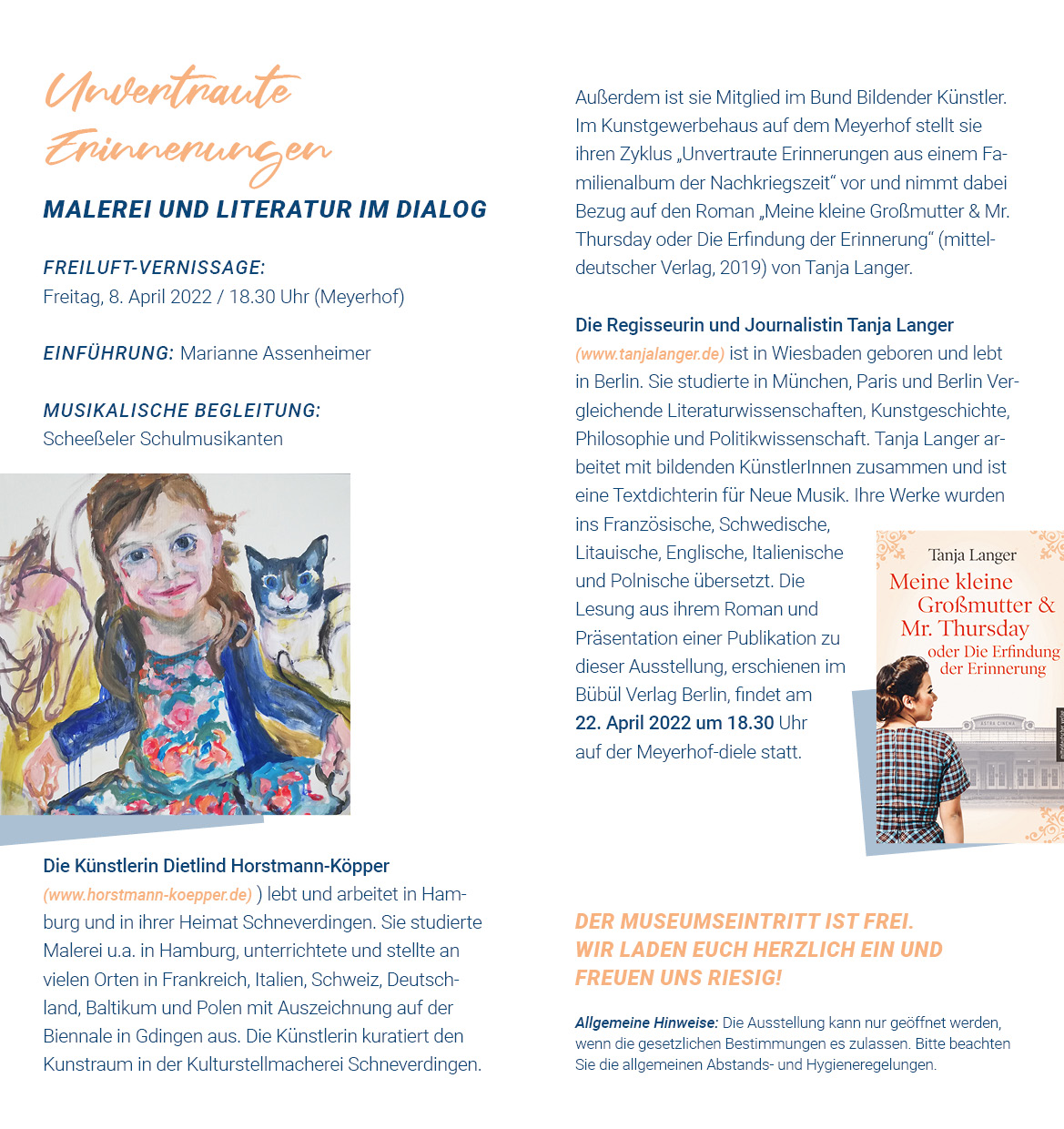 Tanja Langer. Tanja Langer liest aus ihrem Roman, spricht über die Bilder und führt ein Gespräch mit der Künstlerin (am 22. April 2022).