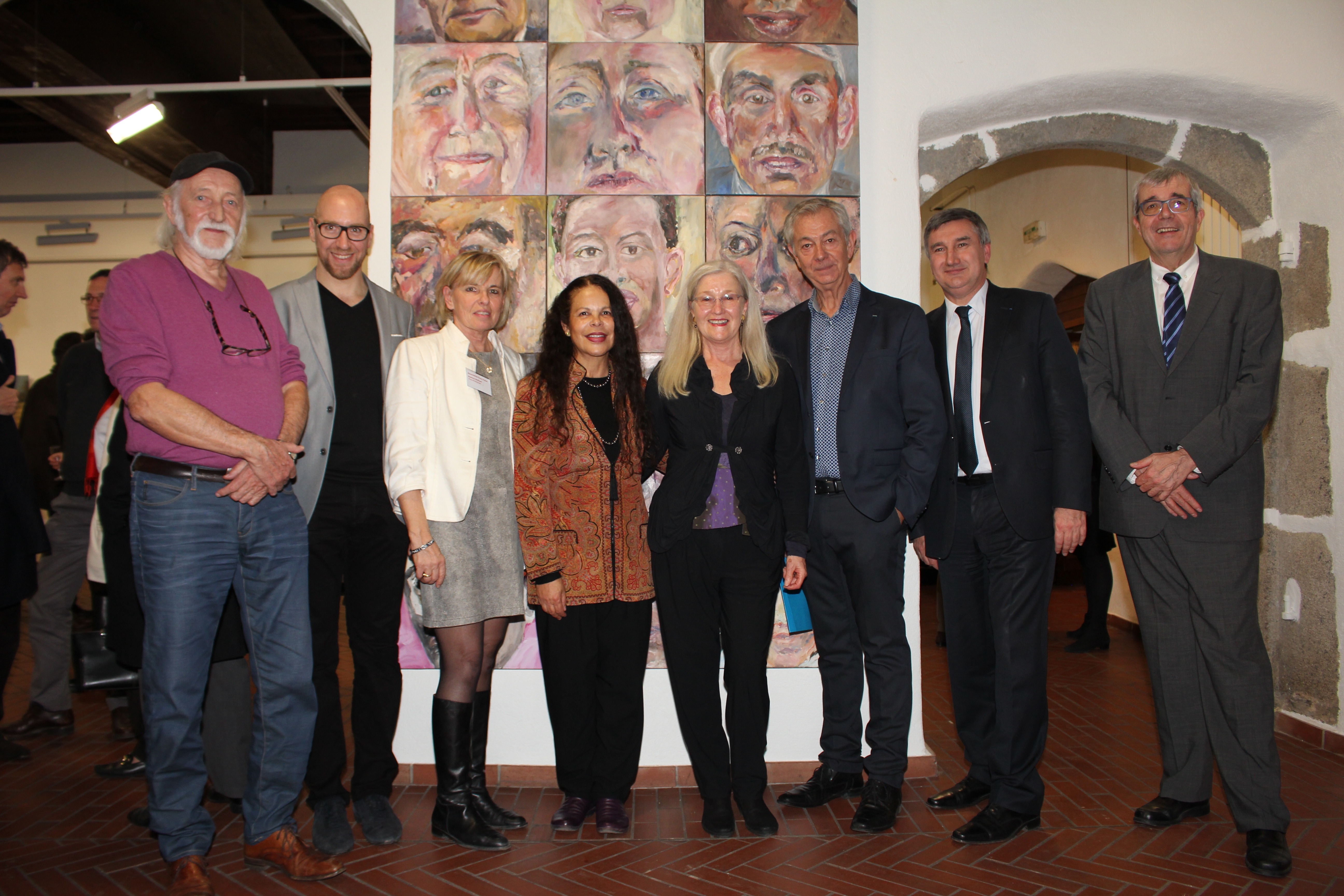 Urenkelin; Dalva Duarte, Künstlerin und Schirmherrin der Ausstellung; Dietlind Horstmann-Köpper, Künstlerin; Michel Régnier, Beauftagrter